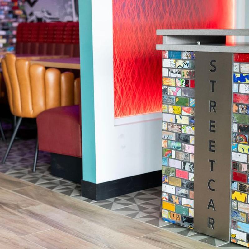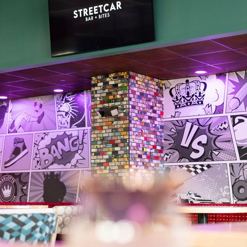 Immerse yourself in the vibrant energy of our establishment, where sports enthusiasts gather to cheer on their favorite teams on our numerous high-definition TVs. Our expansive bar serves up a diverse selection of craft beers, signature cocktails, and mouthwatering bites that cater to every palate. Step into our pop-art themed haven, where every corner tells a story, and every moment is filled with fun! Enjoy our large indoor dining area and bar or relax in our outdoor seating area while taking in the breathtaking view of the city skyline. At Streetcar Bar + Bites - we're not just a venue; we're a celebration of good times, great company, and the spirit of Wesley Heights. Cheers to an experience like no other!
