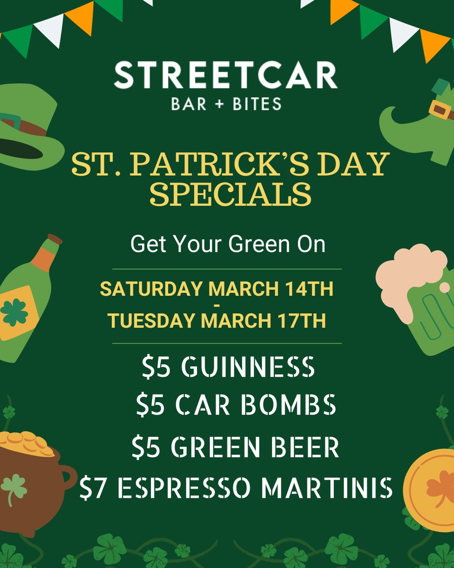 Celebrate St. Patrick's Day in Charlotte from Saturday March 14th- Tuesday March 17th with daily specials